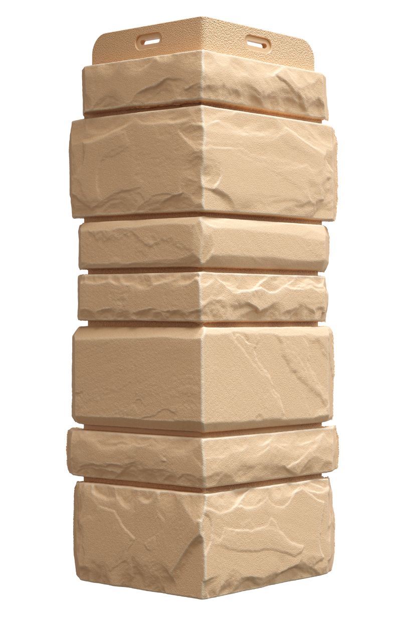 Дизайн внешних углов в цвете «навахо» идеально сбалансирован — имитация песчаника разных размеров идеально дополняет фасадные панели STERN, а сколотая фаска делает рельеф более выразительным, особенно в светлом исполнении.